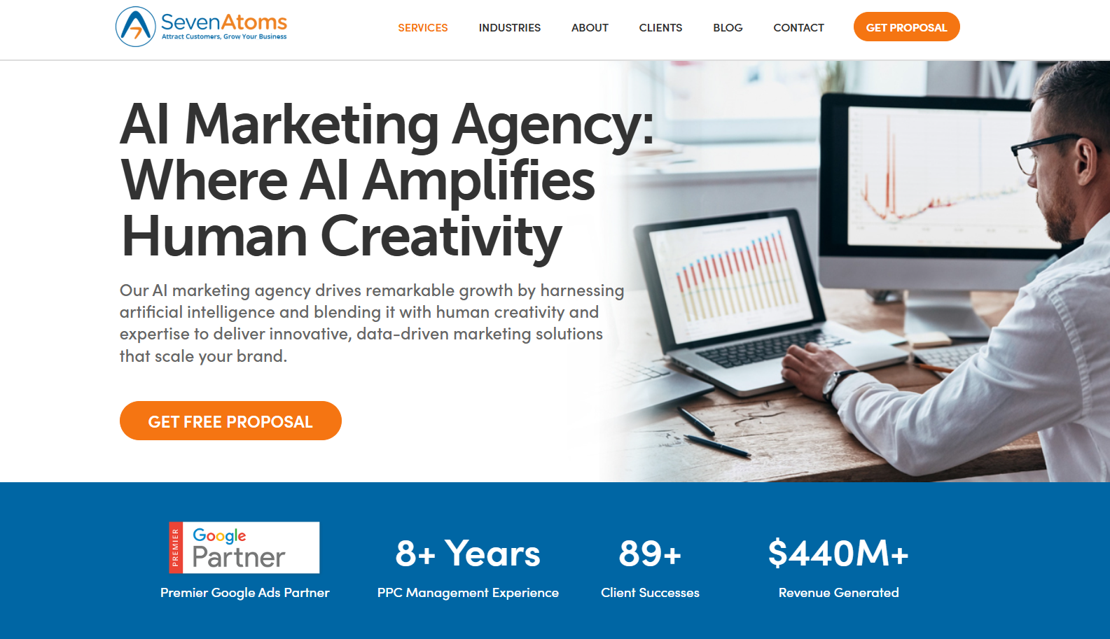 SevenAtoms works well for SaaS, eCommerce, and B2B brands that need full-funnel acquisition support.
