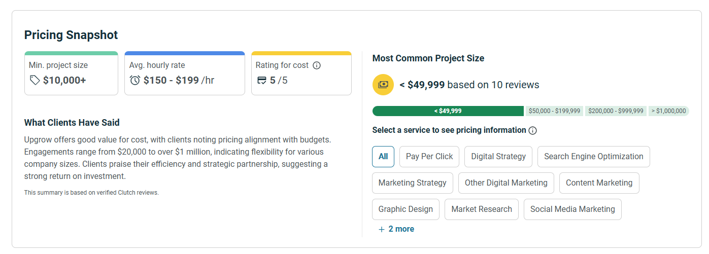 $5,000+ with a reported average hourly rate of $150 – $199/hr.