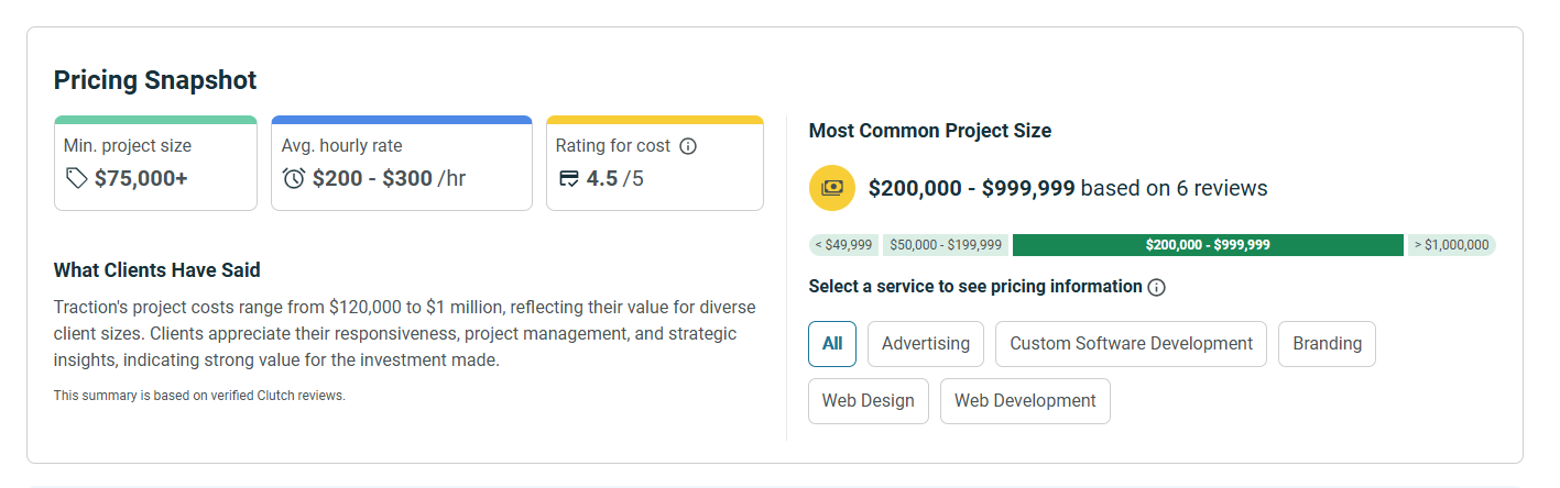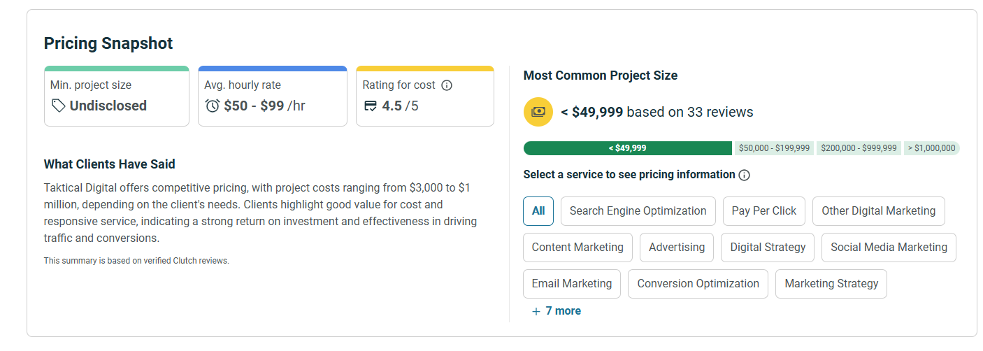 $5,000+ with a reported average hourly rate of $100 – $149/hr.