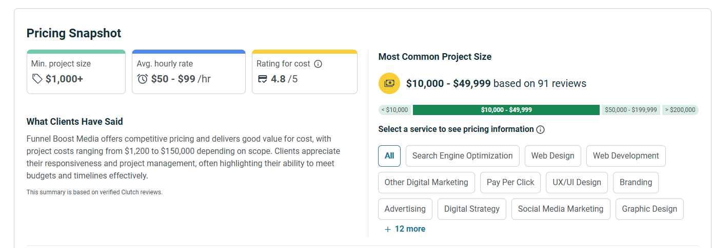 $1,000+ with a reported average hourly rate of $50 – $99/hr.