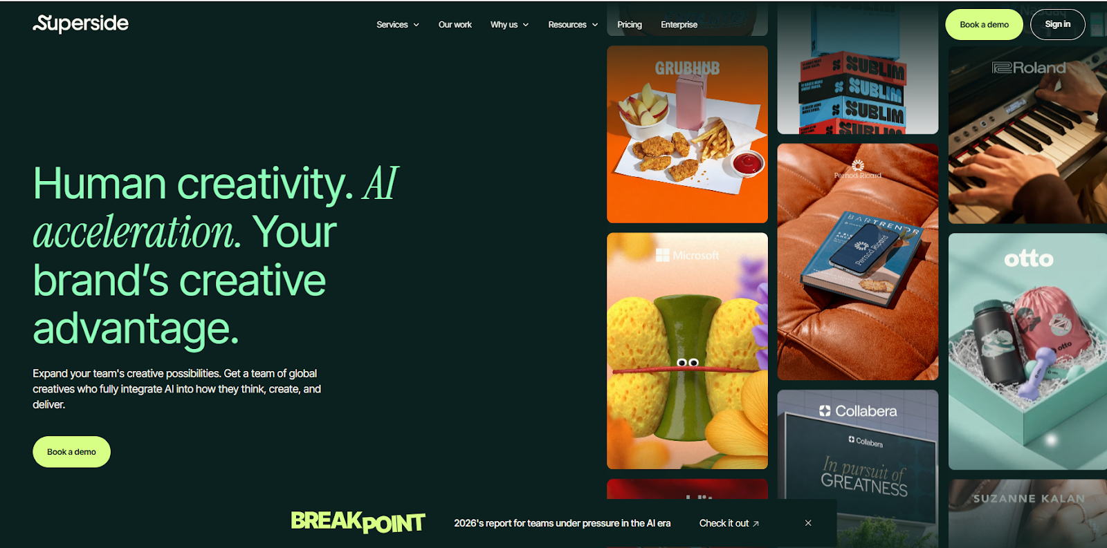 Superside: Best for marketing teams at scale-ups and enterprises that need AI-enhanced creative production, from ad assets to branding, on a flexible subscription model.