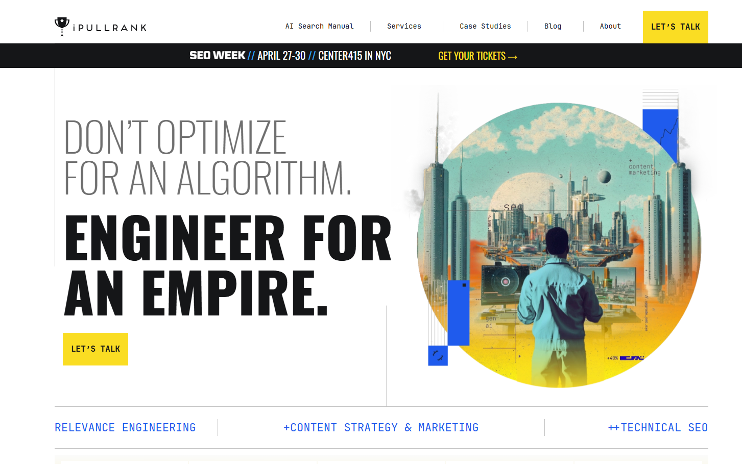 iPullRank is a New York-based enterprise SEO and content strategy agency known for pioneering the Relevance Engineering framework, which blends traditional SEO with AI search optimization.