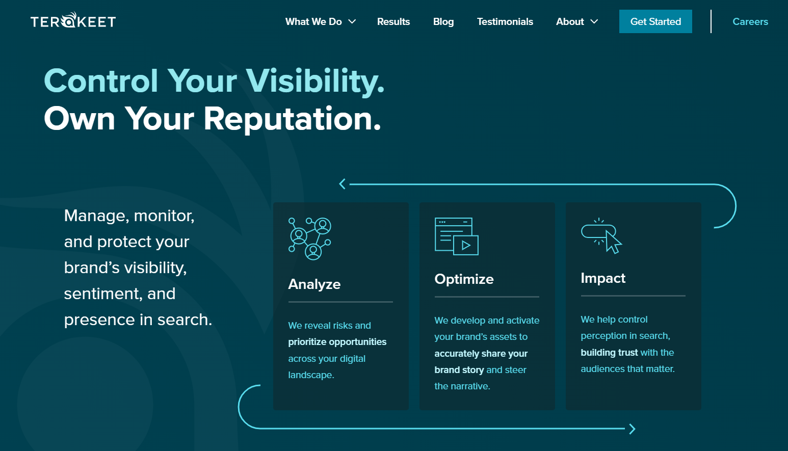 Terakeet: Best for Fortune 500 companies that need enterprise SEO tied to brand reputation management and owned asset optimization at scale.