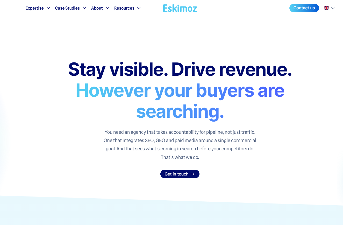 Eskimoz works well for mid-market and enterprise brands that need to scale SEO campaigns across multiple European languages and regions from a single agency partner.