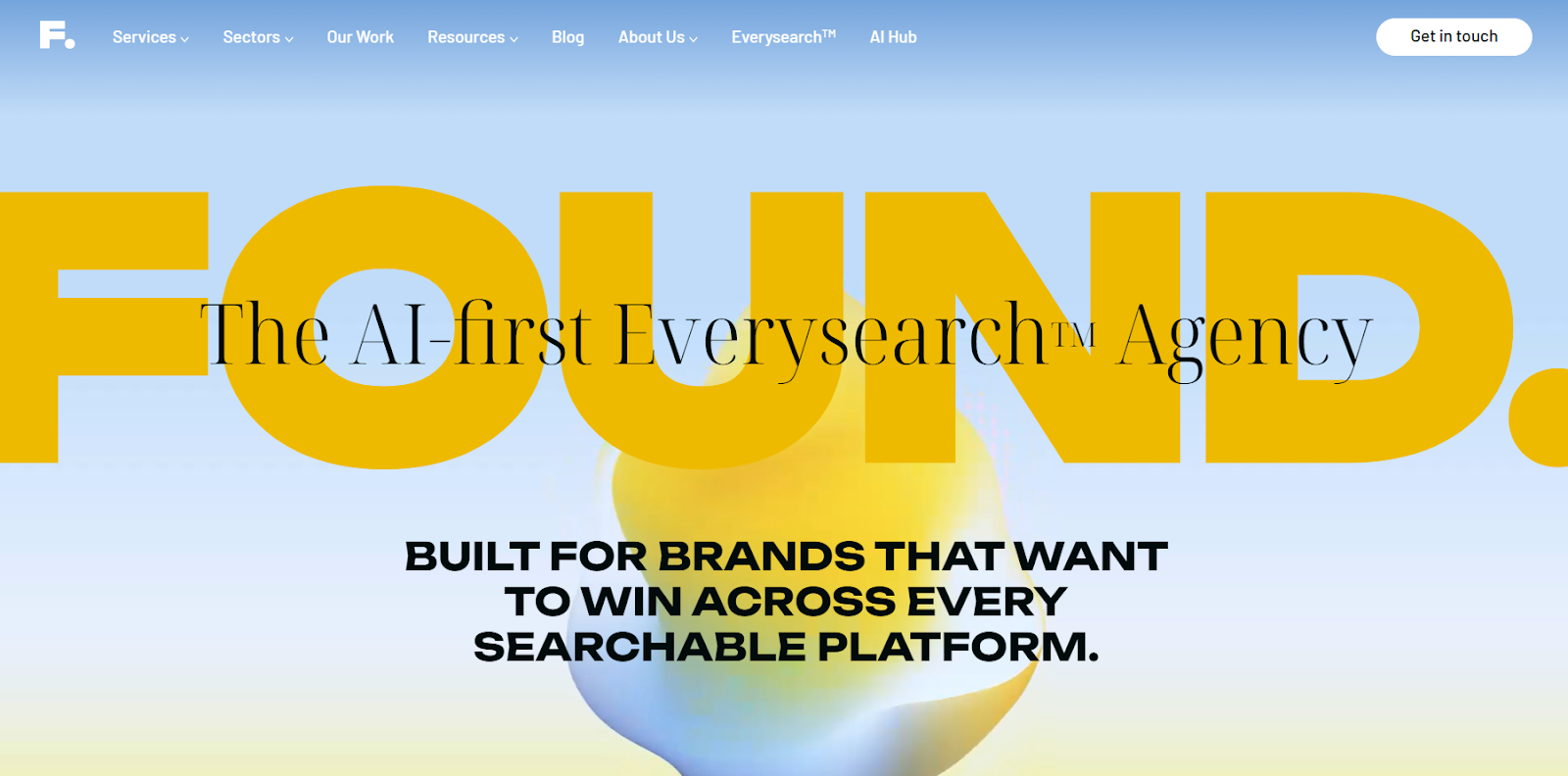 Found is a London-based digital marketing agency that positions itself as an "AI-first Everysearch" agency, optimizing brand visibility across Google, TikTok, Amazon, and AI-native platforms.