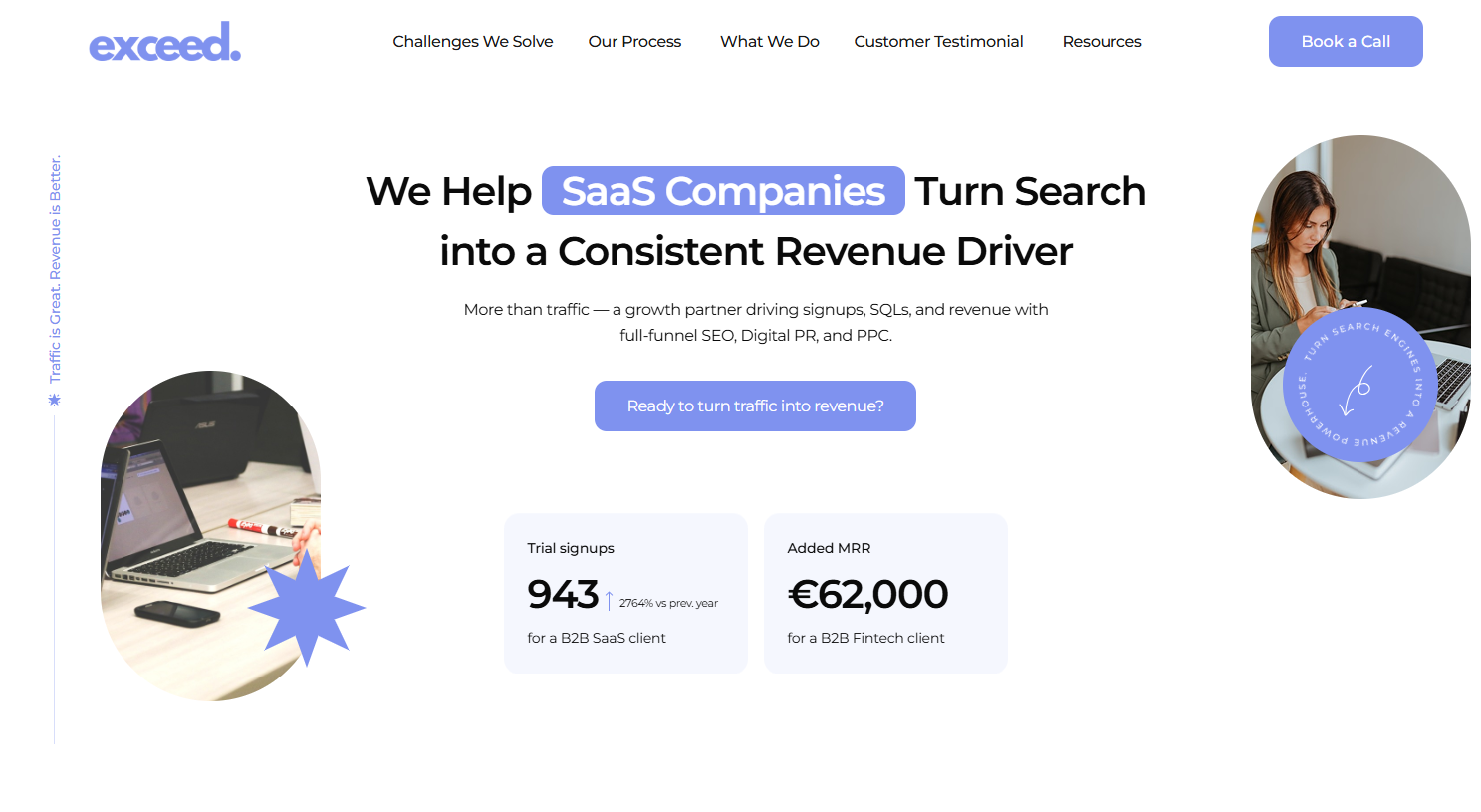 Exceed is a European-based B2B SaaS SEO and GEO agency that focuses on turning search visibility into a revenue engine.