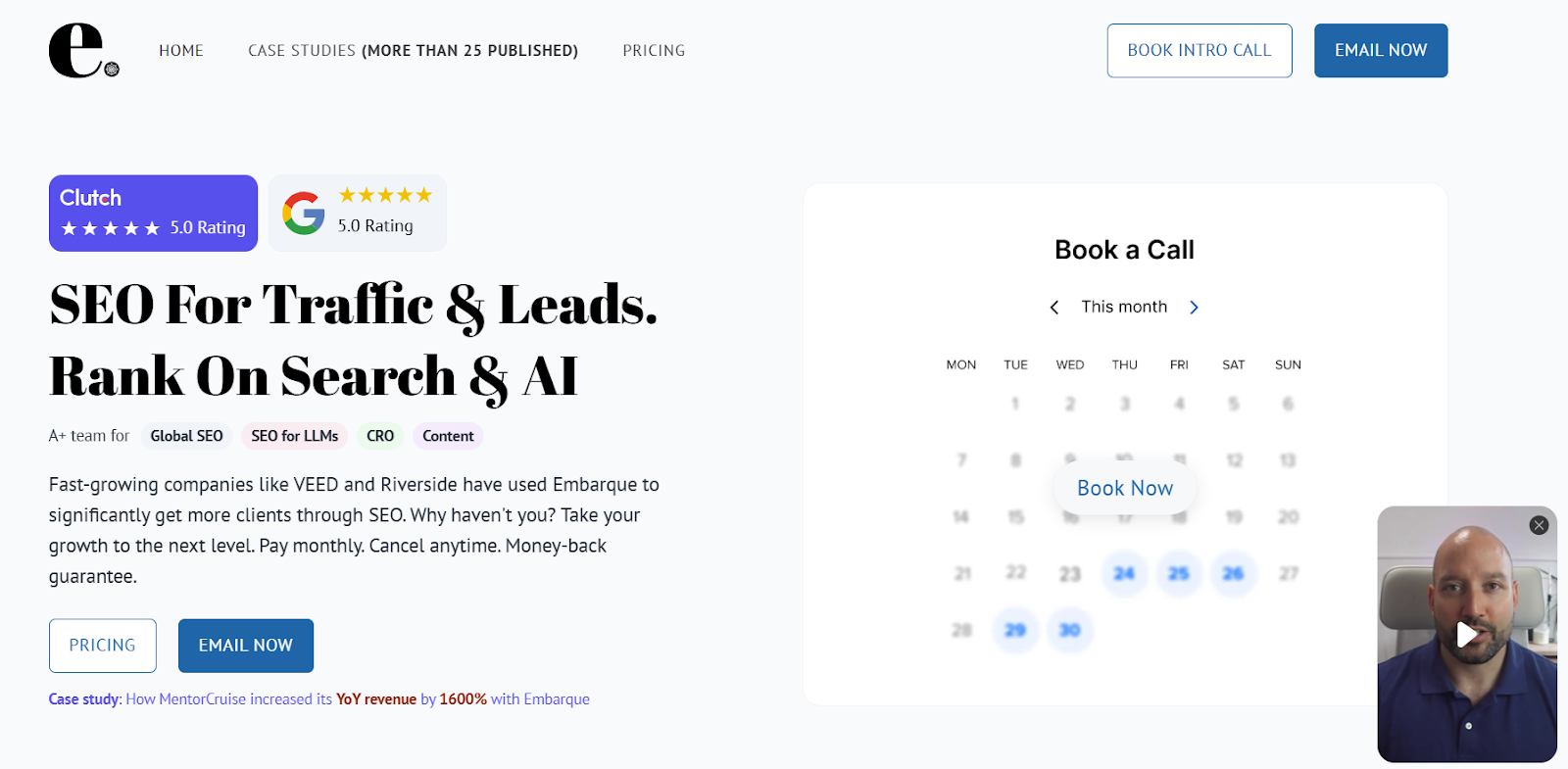Embarque: Best for bootstrapped or pre-Series A SaaS startups that want productized SEO copywriting at a lower price point than most agencies on this list.