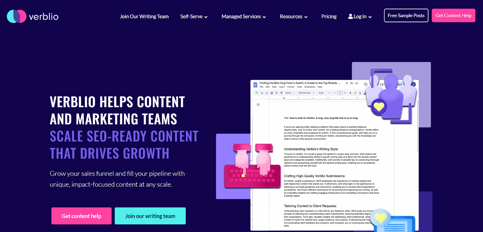 Verblio: Best for SaaS companies with in-house marketing teams that want a flexible content platform to scale blog production without managing freelancers.